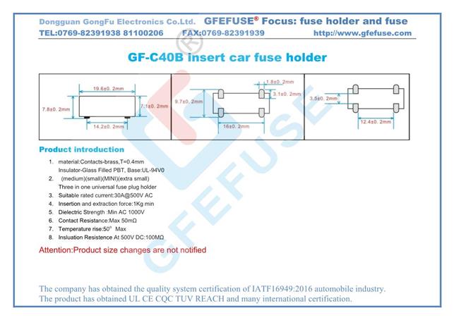 Welcome to the official website of Dongguan Gongfu Electronics Co., Ltd., automobile fuse, fuse, current fuse, fuse holder!