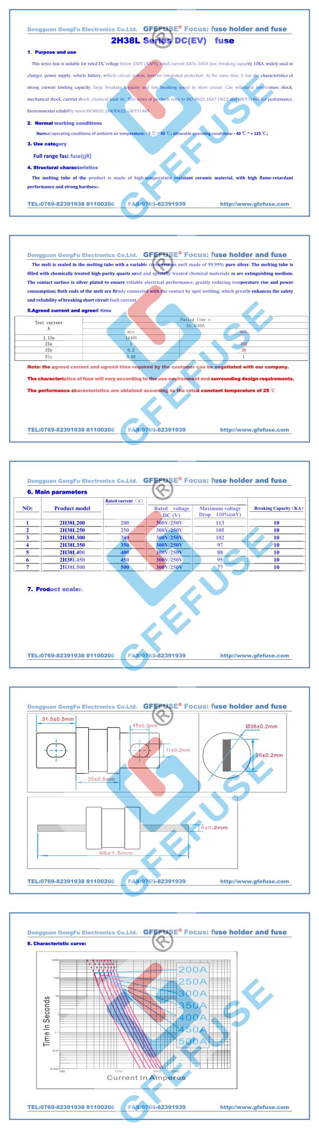2H38L Fast DC Fuse (200A-500A) 250V300V