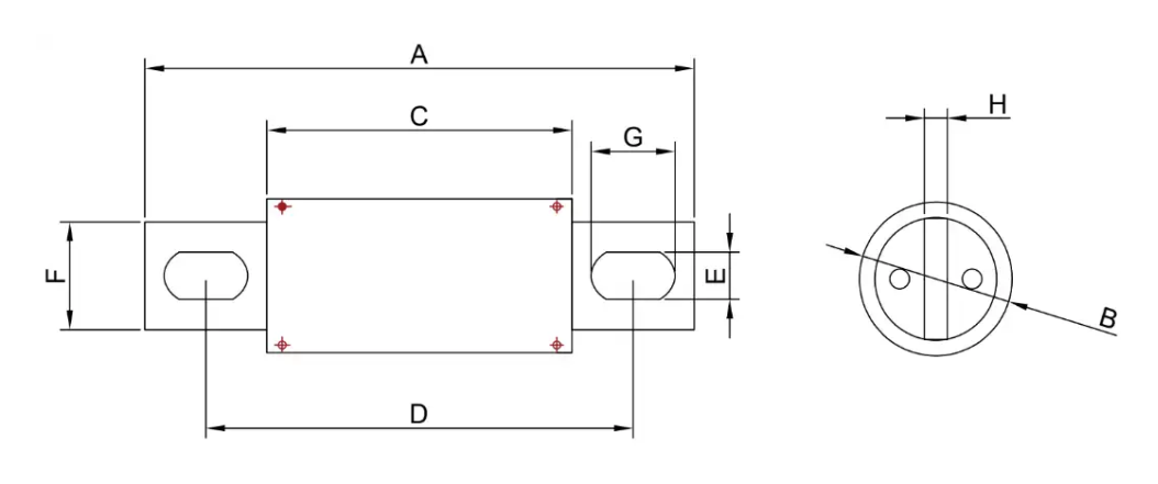 | S. | Amps | A±1.5 | B±1 | C±1 | D±1.5 | E±1.5 | F±0.5 | H±0.5 | G±0.5 |