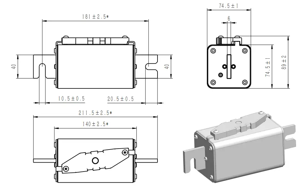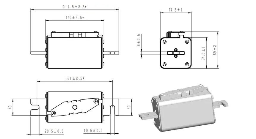| Connect | Part No. | Fuse Amps | Average @250KA/1500Vdc | Power Loss (W) | Approvals | |||